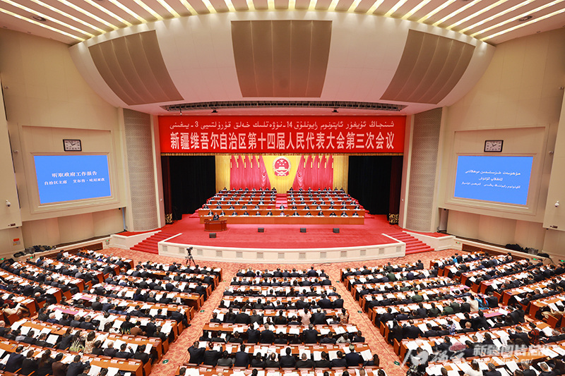 1月19日,新疆维吾尔自治区第十四届人民代表大会第三次会议在新疆人民会堂开幕。石榴云/新疆日报记者 崔志坚摄