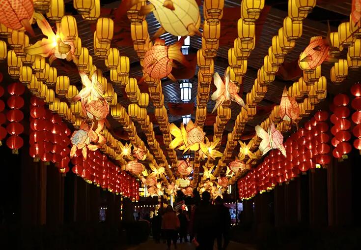 燃灯做果品、鸟兽、鱼虫形及‘庆贺中秋’等字样,上糊色纸绘各种颜色。中秋夜灯内燃烛用绳系于竹竿上,高竖于瓦檐或露台上,或用小灯砌成字形或种种形状,挂于家屋高处,俗称‘树中秋’或‘竖中秋’。