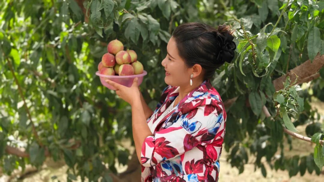 10月9日,在和田县布扎克乡托万喀什村村民凯麦尔妮萨·麦麦提艾力的果园里,她正忙着采摘今年秋天最后一批桃子。“家里5亩果园今年能赚8万多块。”她笑着算起收益账,自从2019年开始种桃,跟着乡林业站学了科学种植技术,桃子的产量和品质一年比一年好。如今新房盖起来了,小汽车也开上了。“日子就像这桃儿一样,越过越甜。”她说。